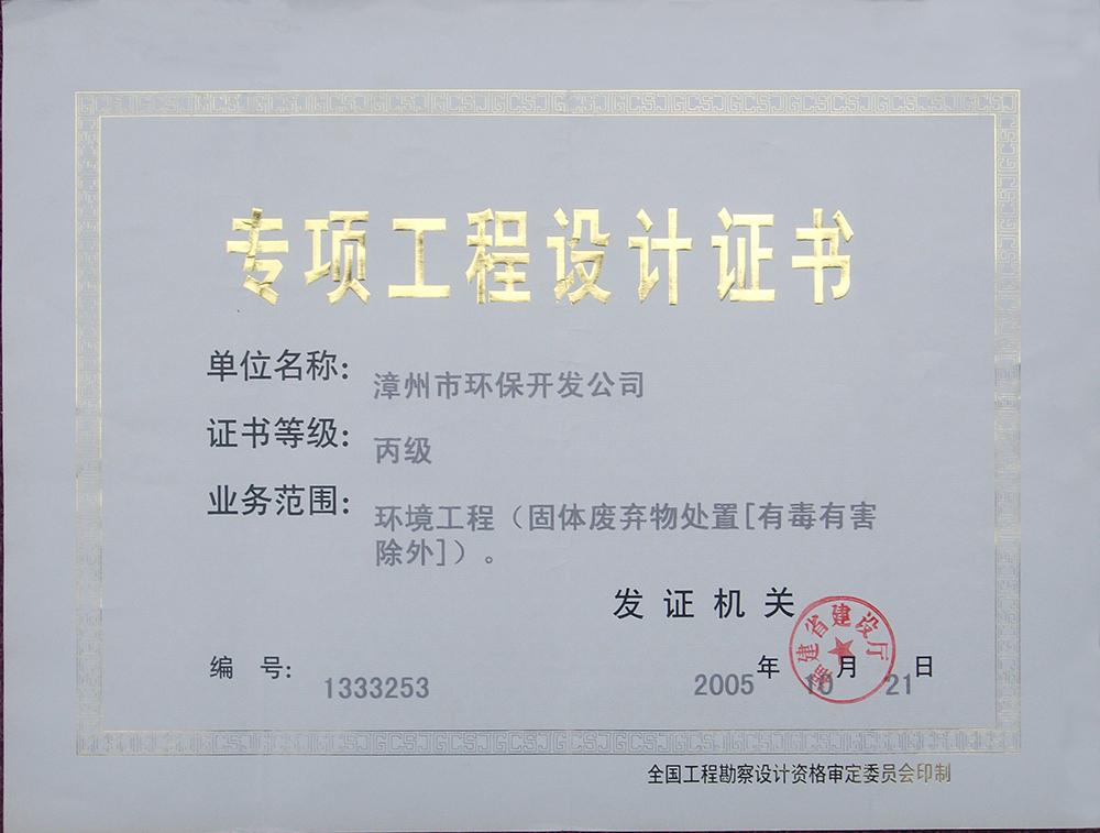 1、環(huán)境工程(廢水、廢氣)專項(xiàng)工程設(shè)計(jì)乙級,證書編號:3417;